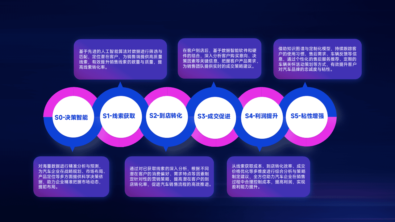 通过拓宽潜在客户来源、、、优化线索分配并提高到店转化率,,以增强销售效率。。。。同时,,利用线索数据不断优化分析模型,,,有效提升转化率,,,,扩大营销影响力。。。。